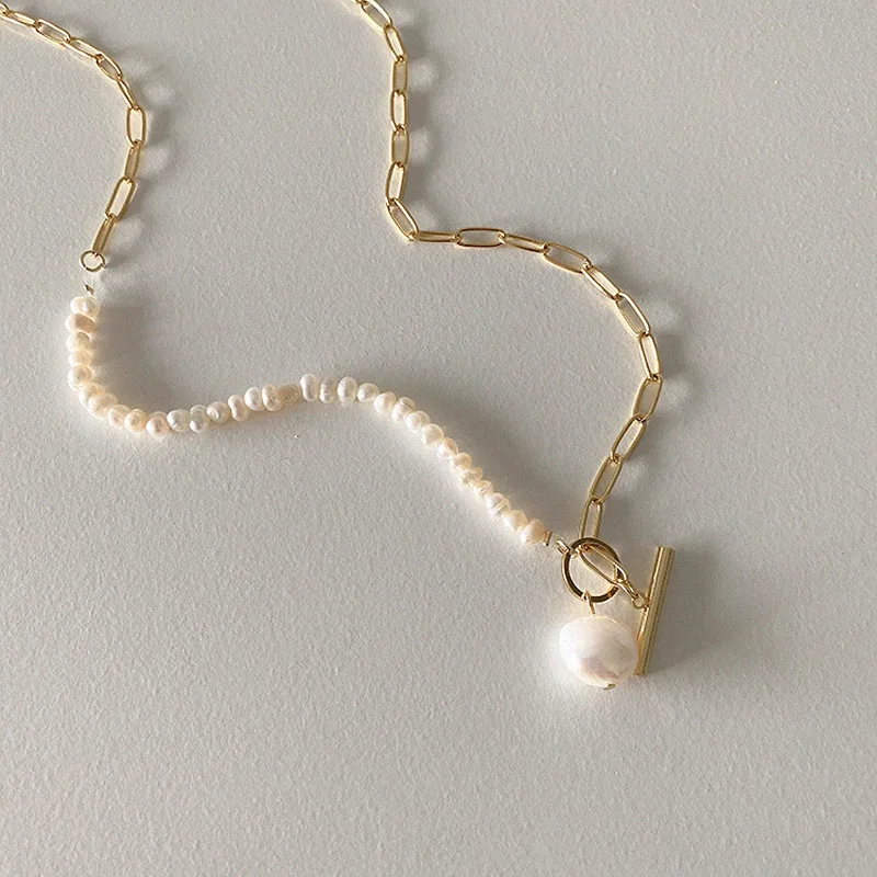 Name: LOVOACC-collar de perlas naturales de agua dulce para mujer, cadena de eslabones gruesa dorada, cierre de palanca asimétrico, Gargantilla circular
